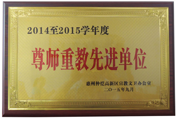 熱烈祝賀恒升實(shí)業(yè)有限公司2015年榮獲惠州市仲愷高新區(qū)評選為2014至2015學(xué)年度“尊師重教先進(jìn)單位”